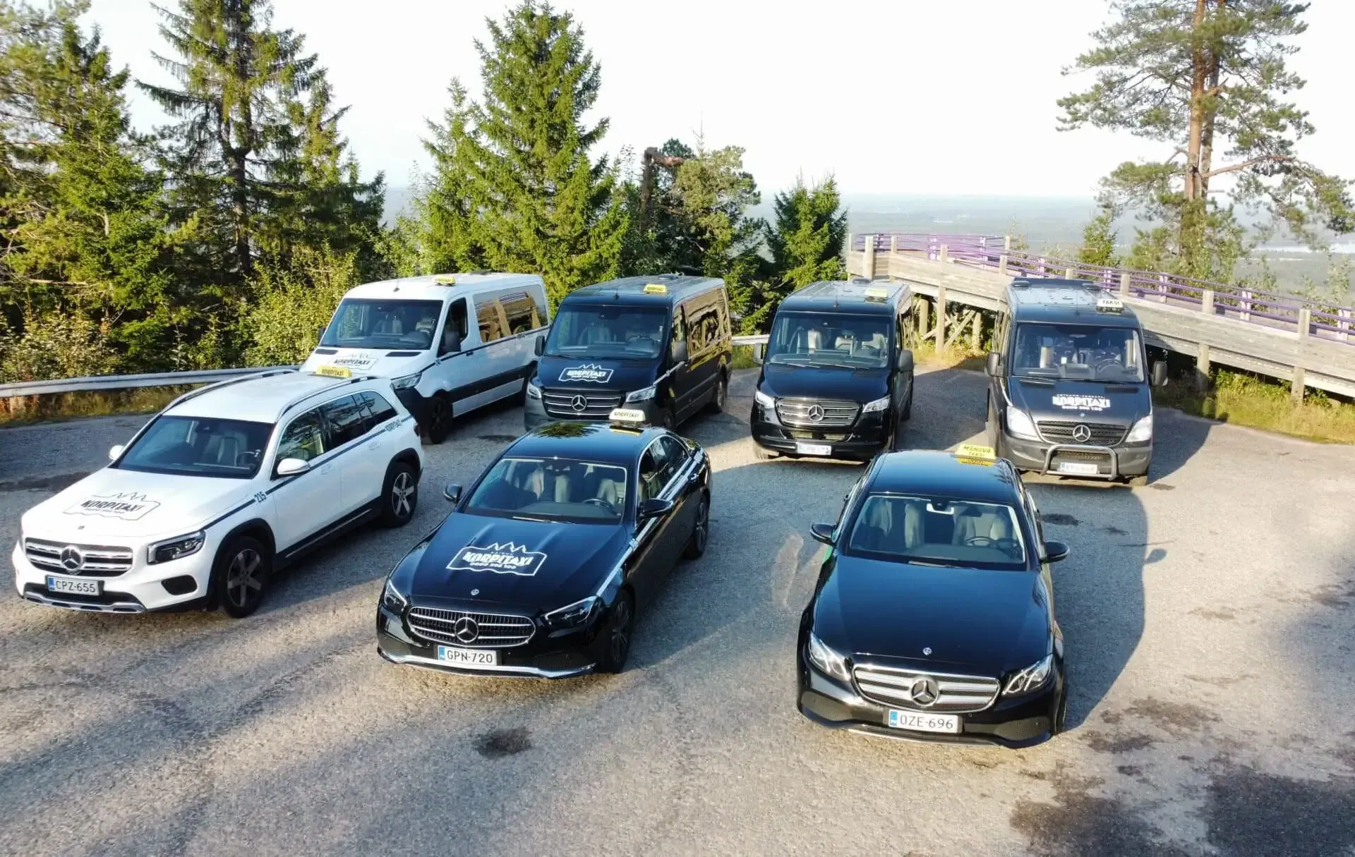 The strength of our taxi service operating in the Sotkamo-Vuokatti area is based on local knowledge and many years of experience in serving different customer groups. Our modern Mercedes-Benz fleet of seven cars consists of passenger cars and 1-8 seater minivans, which enable flexible transport solutions for small groups to larger parties. Our expertise is reflected in disabled transport and official permits for Kela taxi services. We manage our own KP numbers through both Korpitaksi and Menevä.